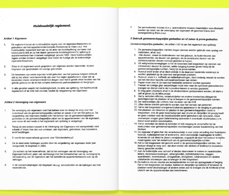 Het huishoudelijk regelement is te vinden op de web pagina Over VVE Rontomme